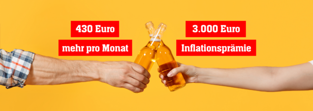 430 Euro Lohnplus und 3.000 Euro Inflationsprämie