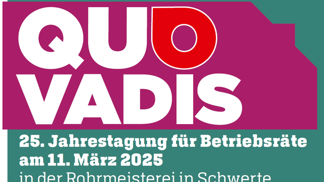 Im kommenden Jahr finden die Betriebsratswahlen statt. Bei dieser 25. Jahrestagung wollen wir von- und miteinander lernen, wir wollen die Belegschaften auf die anstehenden Betriebsratswahlen vorbereiten, den Menschen Mut machen, ein neues Kapitel in der dann 106-jährigen Geschichte der betrieblichen Mitbestimmung zu schreiben. Betriebsratswahlen sind Seismographen im Betrieb. An ihnen lässt sich vieles ablesen. Diese Wahlen sind gelebte Demokratie im Betrieb, deren Zustand nicht zuletzt auch Aufschluss darüber gibt, wie es um die Kultur eines Unternehmens bestellt ist. In dieser Quo Vadis Ausgabe beschäftigten wir uns in vier Themenworkshops mit rechtlichen und organisatorischen Aspekten der Betriebsratswahlen 2026 und geben den Teilnehmenden wichtige Impulse und kreative Anregungen. Wir freuen uns auf eine lebendige und hoffentlich ideenreiche Veranstaltung und zählen auf Dich, Dein Gremium und Eure Beteiligung.