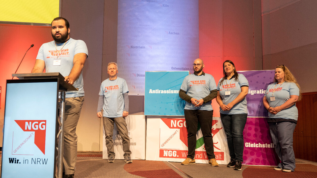 Die Themen wurden ausschließlich von ehranamtlichen Delegierten vorgestellt. Sie wurden vom Konferenzpublikum regelrecht gefeiert. Denn nicht nur die Themen sind wichtig. Auch die Reden der Delegierten haben begeistert. "Das zeigt einmal mehr, welch tolle Kolleginnen und Kollegen die NGG NRW im Ehrenamt hat", sagte Landesbezirksvorsitzender Mohamed Boudih am Ende der Konferenz.